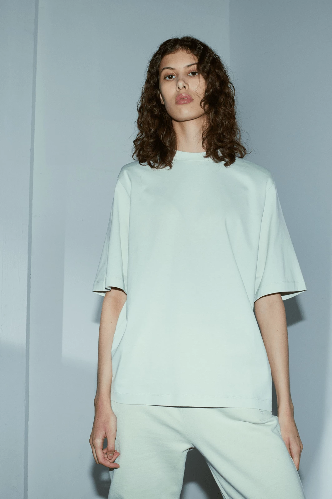 Oversize t-shirt in soft 100% organic cotton. The t-shirt has detachable shoulder pads that create a defined silhouette and an overt oversize look. It has round neck, short sleeves, and an embroidered JUST female emblem in the back of the neck. A cool and edgy t-shirt that can be styled with anything.